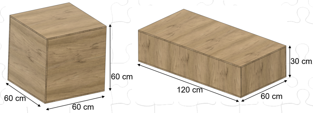 FROEBEL BLOCKS ideen er at Super Size ‘Gift 3’ og ‘Gift 4’ – lavet i træplader der kan holde til at være ude i vind og vejr.