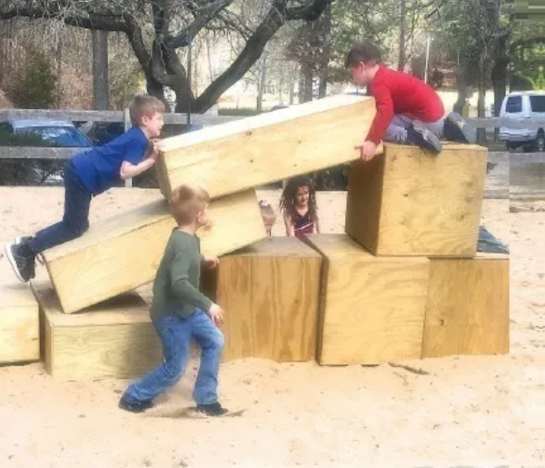 Blokkene er relativt tunge (ca. 19 kg) og der skal to mindre børn til at løfte eller flytte dem rundt. -> Det fordre ‘samarbejde’ mellem børnene.